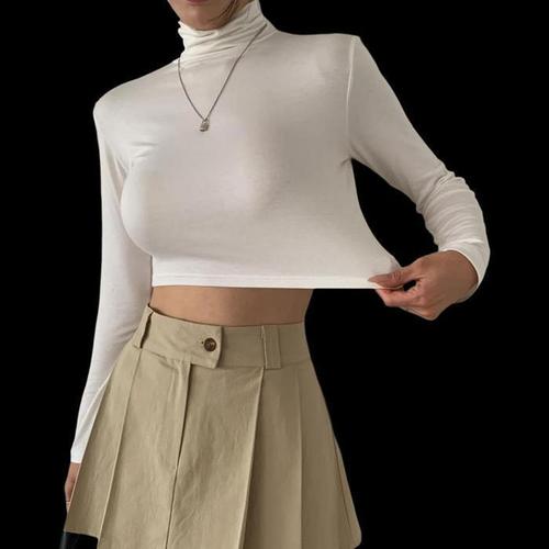 [다잇템]여자 크롭티 글램룩 터틀넥 레이온 티셔츠 (30222023A)