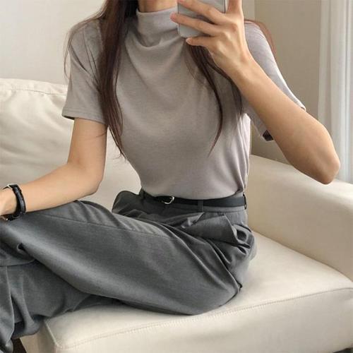 [다잇템]여자 레이온반팔티 모크넥 민무늬 편한 티셔츠 (27343188A)