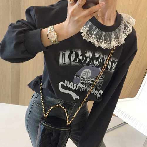[주식회사 브이와이][JHQRU28S_4A]레이스카라 반팔티 배색라인 여친룩 (22618267A)