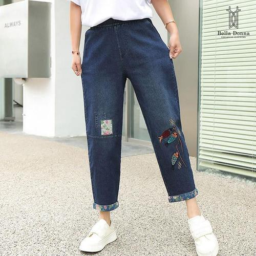 벨라도나 여성 캐주얼 레트로 자수 배기데님팬츠 청바지 사계절 엄마옷 Bon-2678