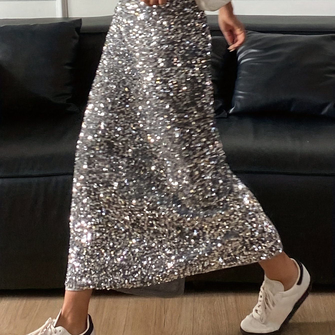 TEMU 여성용 스팽글 장식 A라인 스커트, 미니멀리스트하고 패셔너블하며, 일상복, 파티, 댄스에 적합한 고급스러운 선택