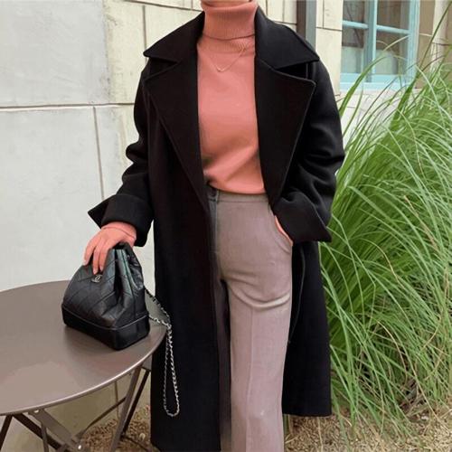 [자체제작/FREE] 울100% 우아한 숄카라 벨트 핸드메이드 롱 코트 로브코트