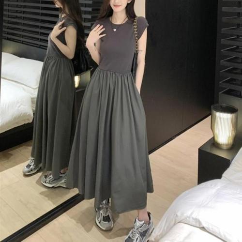 [다잇템]여자 다크컬러 슬리브리스 Y넥 롱원피스 (8291890A)