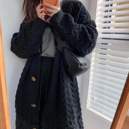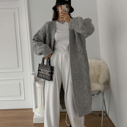 [다잇템]여자 박시핏 꽈배기 로브가디건 슬릿 롱가디건 (11291524A)