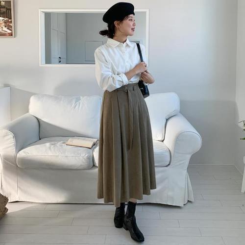 [미라클세븐]여성용 봄가을 롱스커트 벨트 세트 뒷트임 디자인