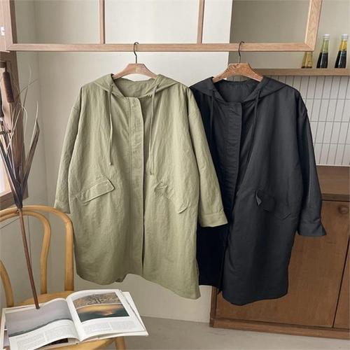 여성 후드 트렌치코트 빅사이즈 야상 후드 점퍼 롱코트 루즈핏