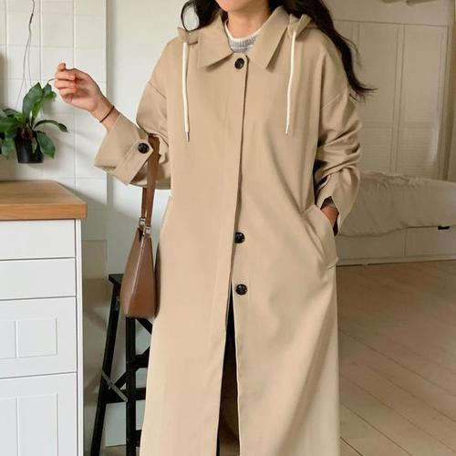 [다잇템]여자 가을아우터 캐주얼 후드트렌치 롱코트 (11176034A)