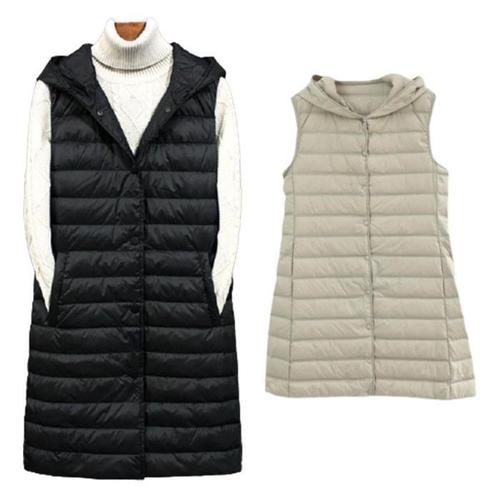 [오너클랜]인기상품 여성용 겨울용 경량 후드 롱 패딩 조끼 사무실 단체복 [WFLKRAQ_260303]