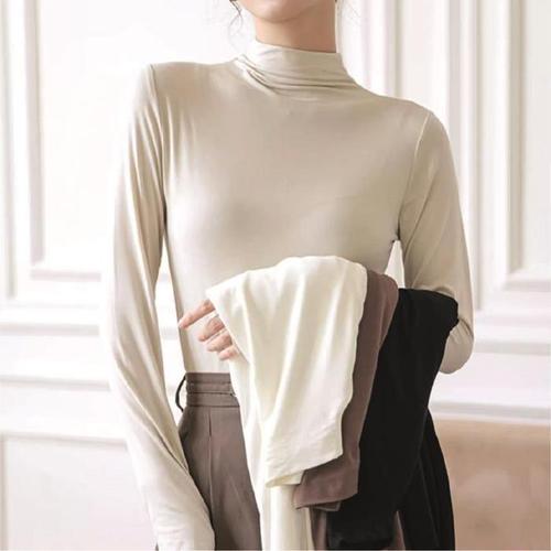 [다잇템]여자 롱슬리브 하이넥 슬림핏 하프 티셔츠 (11036102A)