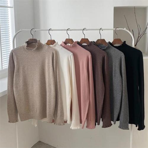 [다잇템]여자 롱슬리브 하이넥 프릴 모크넥 니트 (9150290A)