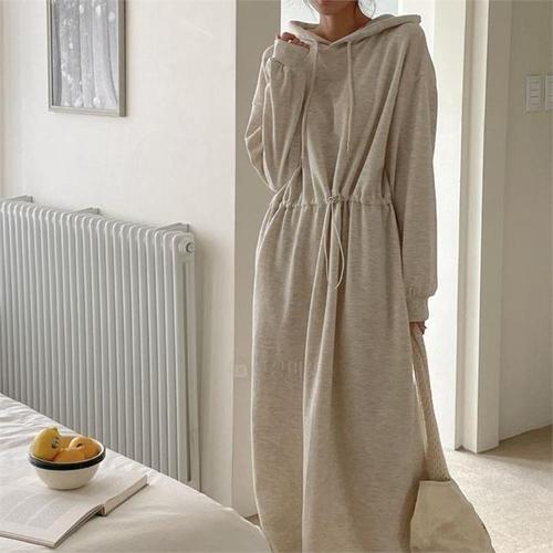 루즈핏 롱 후드 여성 도톰 기모 캐주얼 편한 원피스