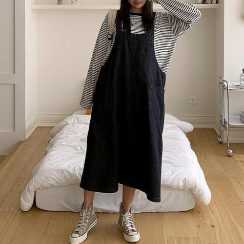 [다잇템]여자 진 캐쥬얼 FW 서스펜더 생지 롱원피스 (19295520A)