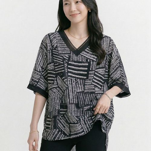 NB3118 우아한 루즈핏 기하학 브이넥 반팔 블라우스