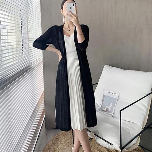 여성 데일리 루즈핏 라인 여름 로브 시스루 롱가디건_4