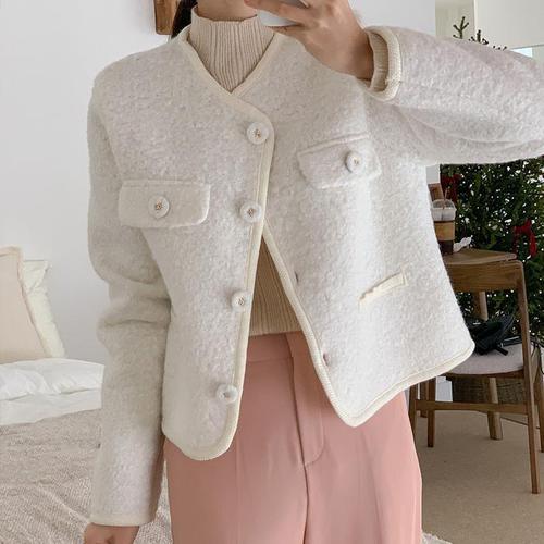 [다잇템]여자 겨울연말룩 리본단추 플리스 자켓 가디건 (23729821A)