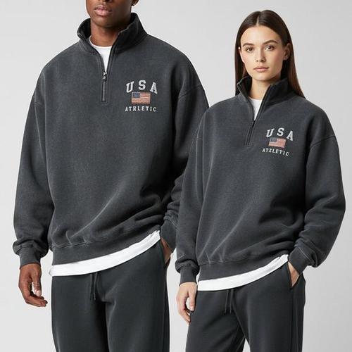 [리얼슬로우]남녀공용 U.S.A 피그먼트 오버핏 하프집업