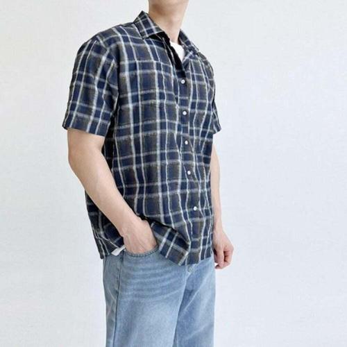 [오너클랜]인기상품 남성용 여름 체크 린넨 오버핏 반팔 셔츠 [WFLLQVW_260305]
