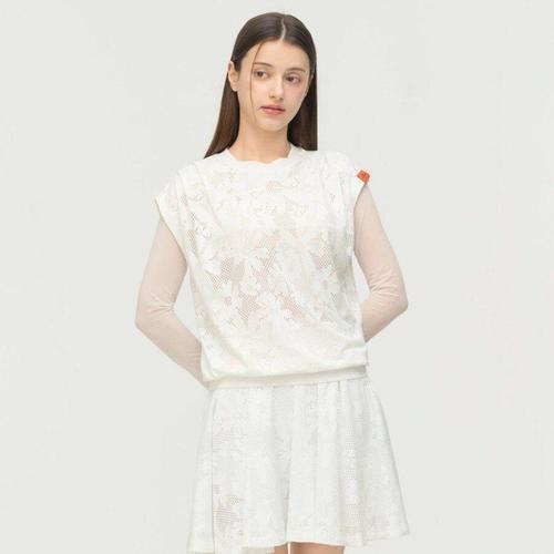 [링스골프]여성 꽃무늬 자카드 라운드넥 티셔츠 L21F2TR282_WH_DG