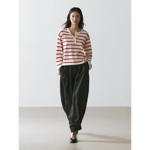 마시모두띠 코튼 스트라이프 헨리넥 니트 스웨터 05629523600