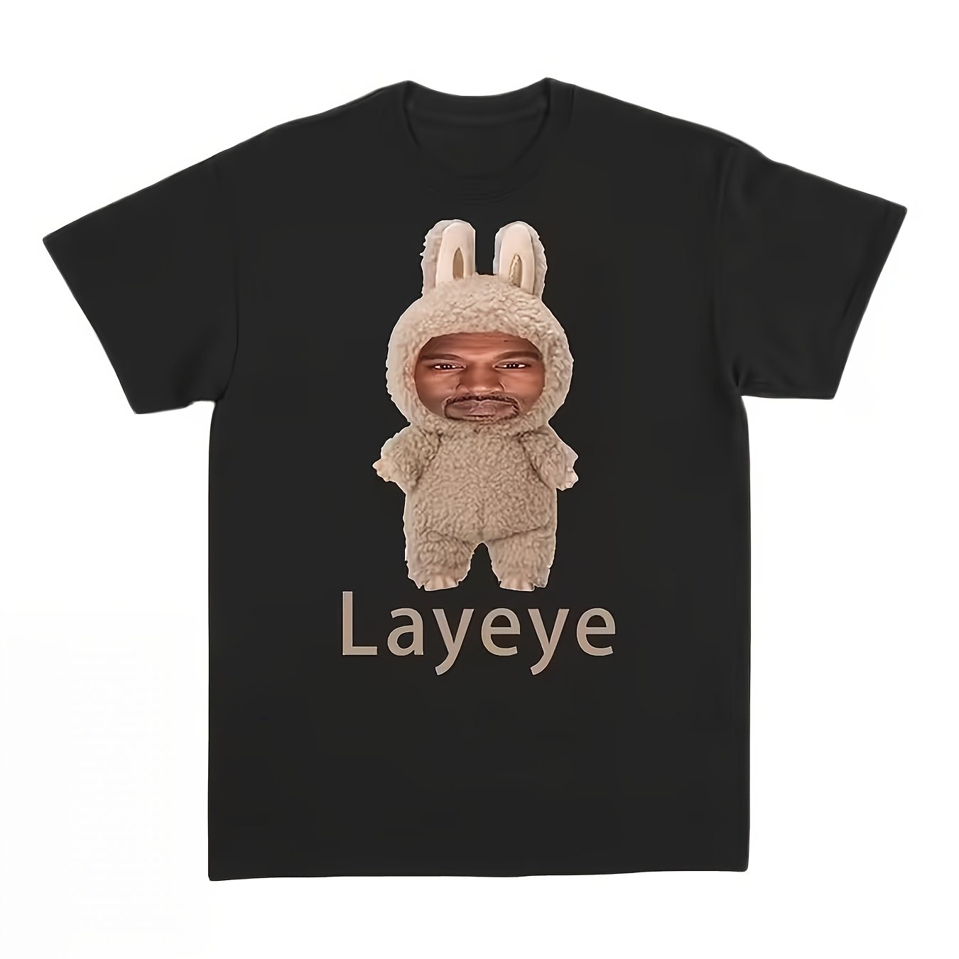 TEMU 2025 카니예 레이예 디즈니 에디션 티셔츠 | 토끼 귀와 "레이예" 텍스트가 있는 재미있는 만화 패턴, 루즈 크루넥, 부드럽고 통기성 좋은 원단, 남녀공용