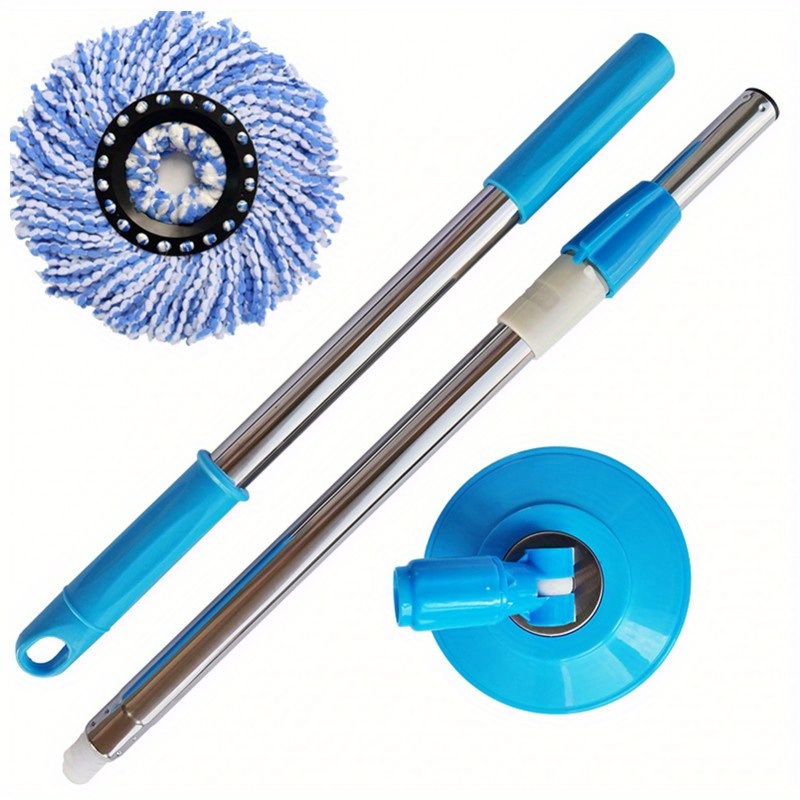 TEMU 회전식 조절식 걸레 - 튼튼한 플라스틱 베이스의 건식 및 습식 호환 회전식 걸레 버킷 시스템, 침실, 욕실 및 화장실 바닥에 적합한 손잡이 교체 세트