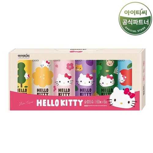 헬로키티 차량용 슬림 미용티슈 (60매 6개X1팩) 총 6개