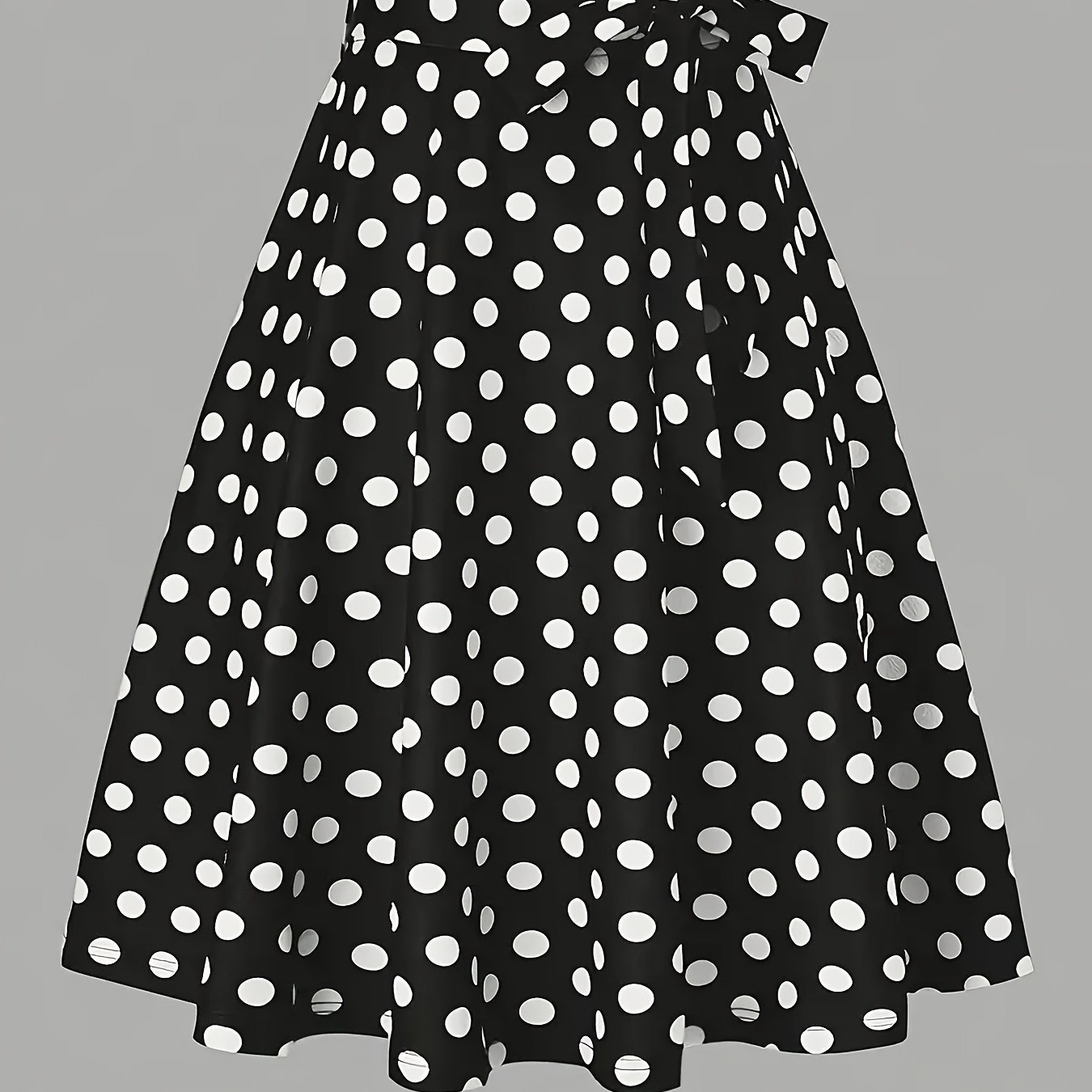 TEMU 폴카 도트 프린트 벨트 플레어 스커트