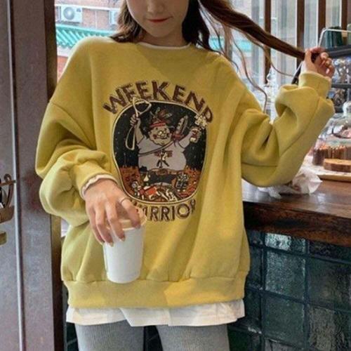 [셀럽하우스]여성 NJOI8755 기모 맨투맨 여자 오버핏 긴팔 티셔츠 머스타드