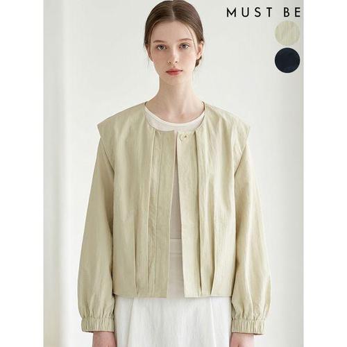 [머스트비]여성 투핀턱 노카라 라운드넥 자켓