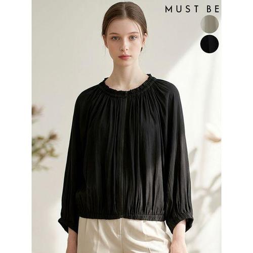 [머스트비]여성 셔링 넥라인 집업 자켓
