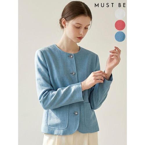 [머스트비]여성 린넨혼방 라운드넥 진주버튼 자켓