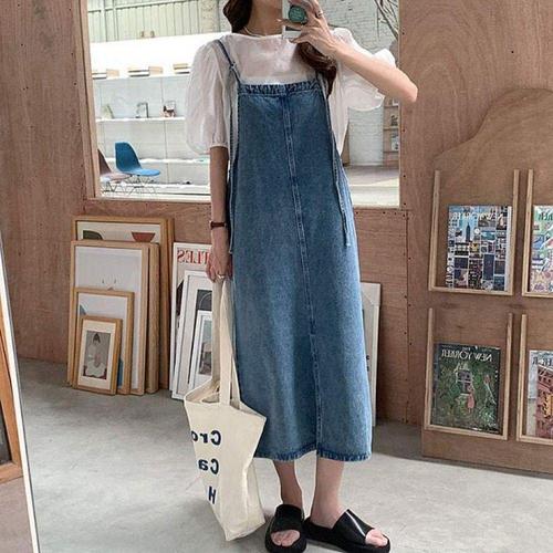 [오너클랜]인기상품 데님 롱 멜빵 스커트 여성용 여름 캐주얼 원피스 [WFLLRJQ_260305]