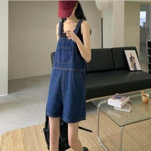 여성용 봄 여름 루즈핏 청멜빵바지 캐주얼 5부 데님 점프슈트 반바지