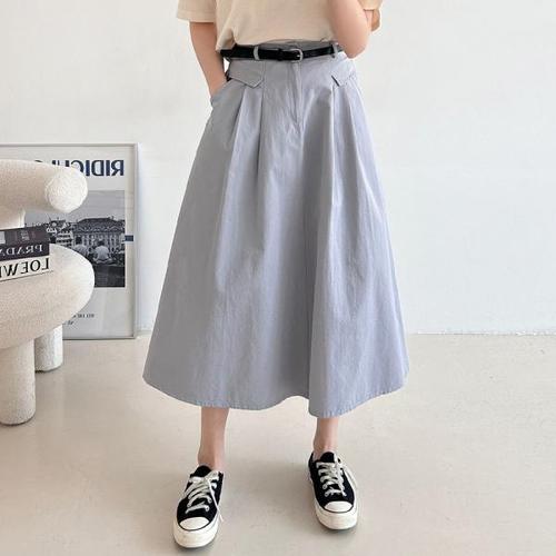 [유야]벨트 세트 뒷밴딩 면 핀턱 포켓 A라인 롱스커트 코튼 치마 -SK0167H- 여성 봄 여름