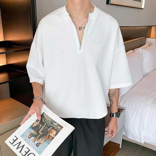 [주식회사 브이와이][JHQRKFNF_4B]남성 유니크 남자반팔티셔츠 여름 지퍼 면티 (23864934A)