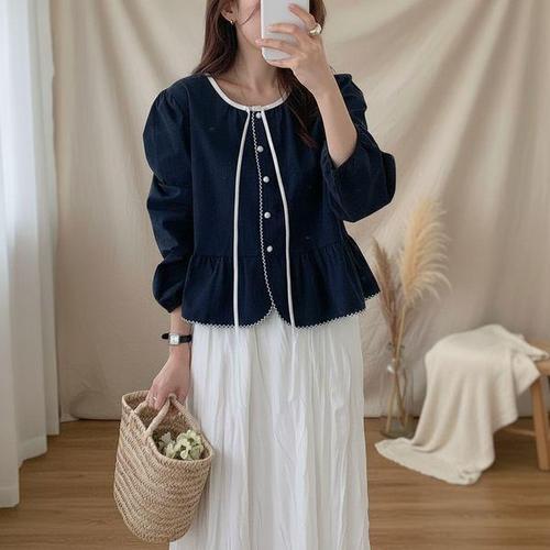 [옷자락]여성 봄여름 가벼운 코튼 프릴 루즈 블라우스