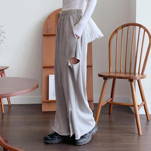 [다잇템]여자 정장바지 면원단 팬츠 넓은 찢어진 팬츠 (10993745A)