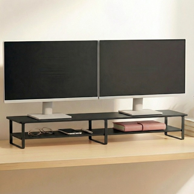 [셀러에이드]원목 듀얼 모니터 받침대 1단 선반 기본와이드 받침