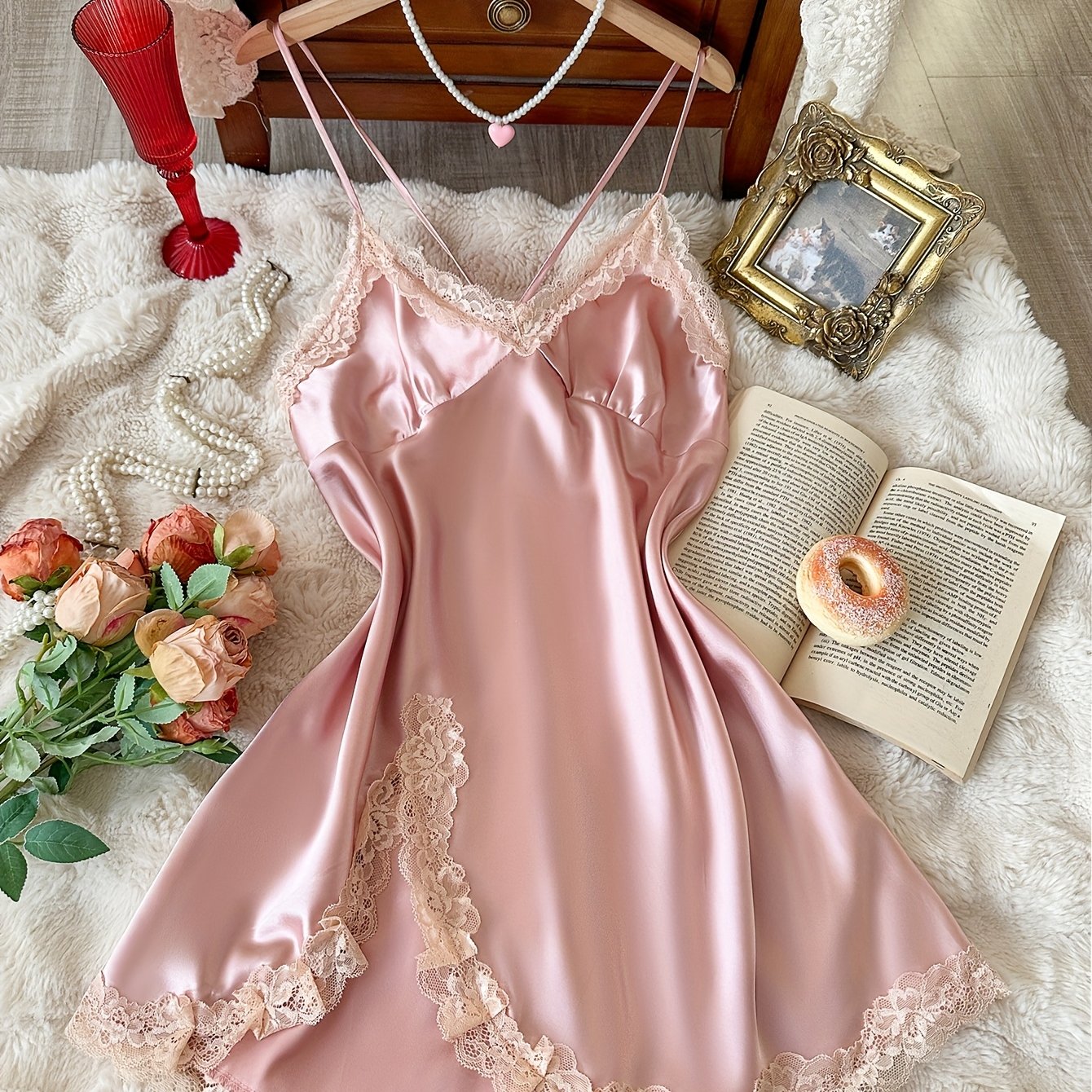 TEMU 세련된 레이스 패치워크 민소매 잠옷, 사계절 착용 가능, 십대용