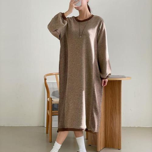 [다잇템]여자 모직 큰사이즈 사이드슬릿 롱원피스_3 (30098378A)
