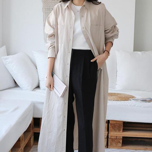 [다잇템]여자 큰사이즈 2WAY 주머니 롱원피스 셔츠 (30101623A)