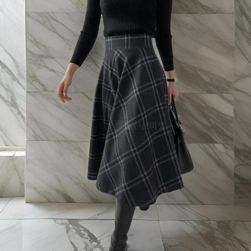 [다잇템]여자 격자 나들이 후레아 큰사이즈 롱스커트 (28897107A)