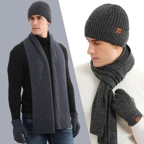 모자목도리세트 남성 중년 겨울 배색 기모비니 목도리 터치장갑 세트