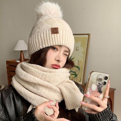 니트 모자 머플러 세트 겨울 방한 프리사이즈 도톰 넥워머 일체형 털모자