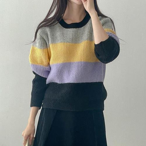 [다잇템][다잇템] 여성 라운드 빅사이즈 FW 무지개 단가라 니트_24141610_588872