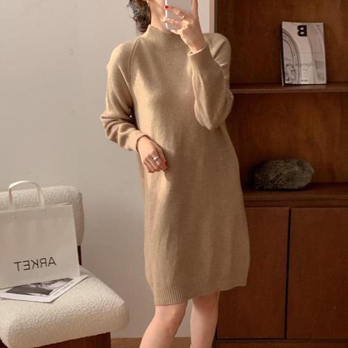 [다잇템]여자 라글란 민무늬 중간 모크넥 FW 원피스 (11333516A)