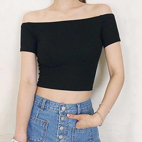 [주식회사 브이와이][JHQRU28L_4A]오프숄더 박스티 반팔소매 티셔츠 무지 이너 (22618483A)