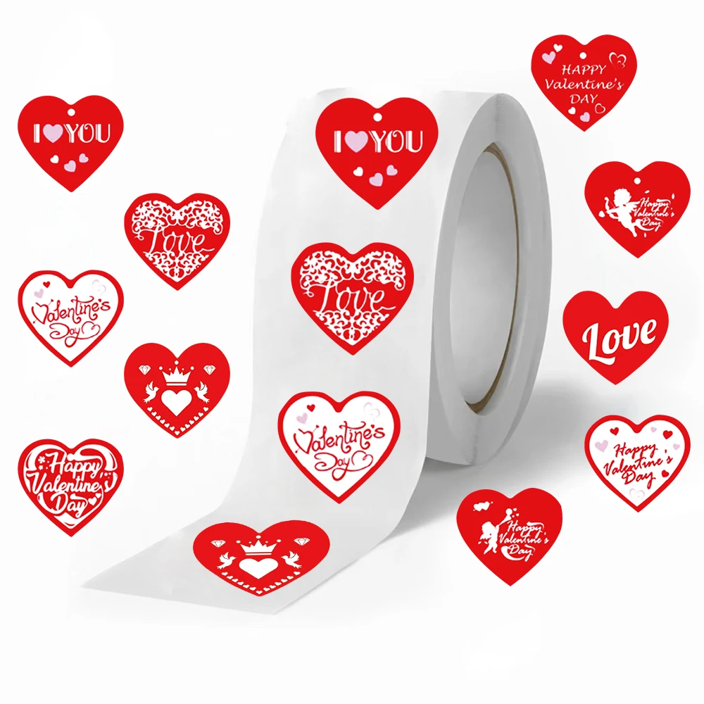 500개 520 러브 레드 스티커 롤 - 저널 및 공예용 귀여운 만화 씰링 라벨