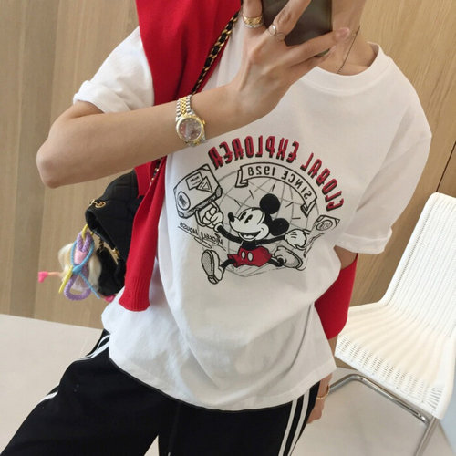 댄싱큐 mickey 프린팅 루즈핏 라운드 반팔티셔츠 (3color)