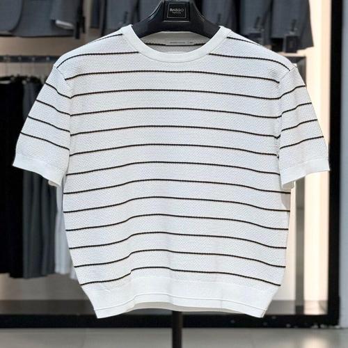 바쏘옴므 세이브존03 바쏘옴므 남자 봄 여름 화이트 면 단가라 라운드 티셔츠 WSAGZ1KR33A